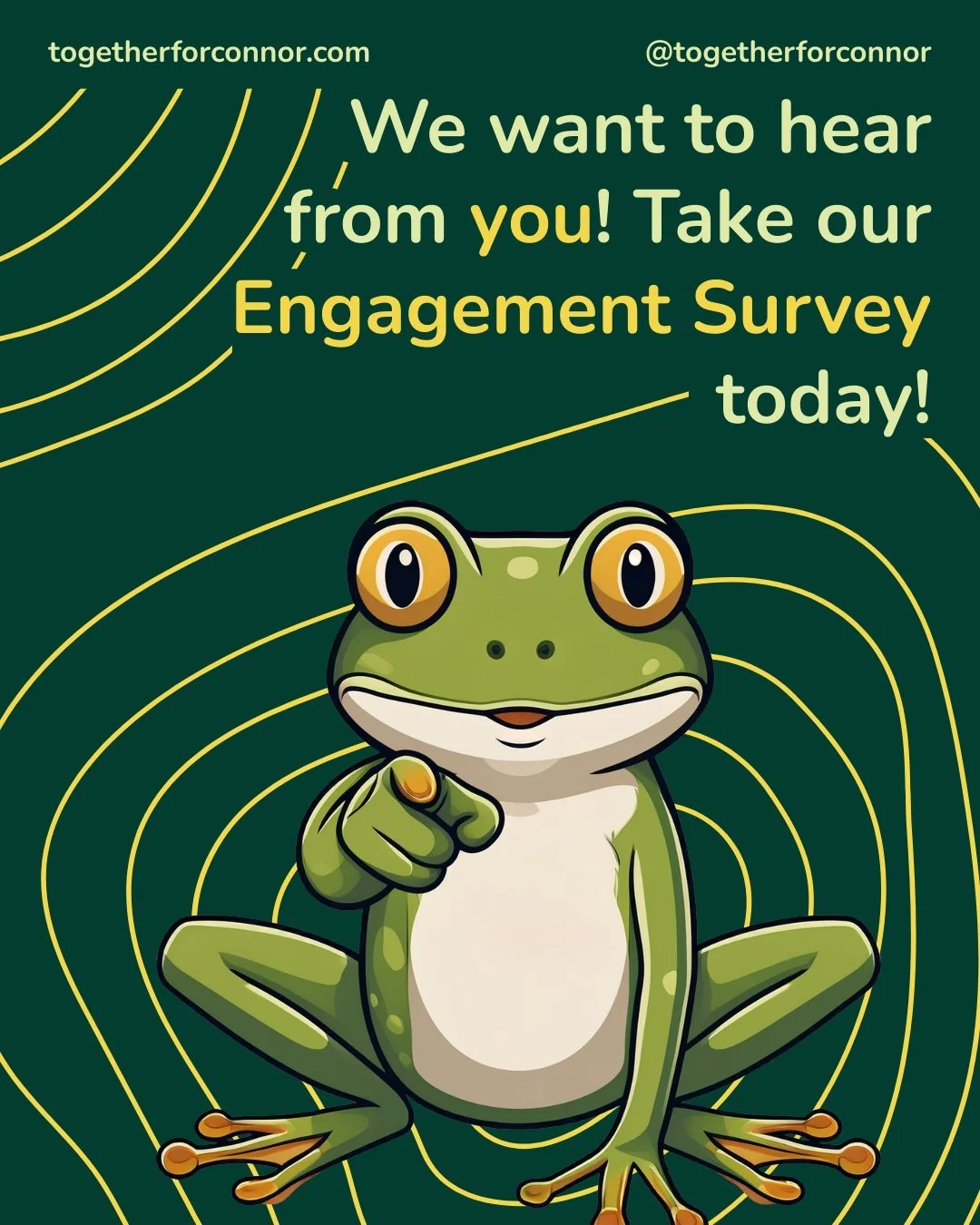 Please complete our Engagement Survey! The survey should take no more than 10 minutes, and your feedback helps guide how we connect with you and how you’d like to support Together for Connor.